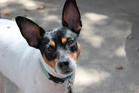 We just couldn't resist that cute little face with these big bat like ears, so he became Myles, the #2 hairy thief in the house hold. Myles to say the lease in a ding bat! He is very well trained, right............Why because he understands two things, FOOD! The reason I say two is because Food comes in Spanish and English, food is food no matter who has it, and he never goes with out his share, or everyone elses for that fact! I think he is part Rat, because he IS a little rat! Part Super Springer, because he springs off all 4 feet, and can almost reach the height of 4 feet, in a single bound. Part Bat, just look at those ears! and he literally flies off the couch, bouncing off anyone who dares to sit next to him, when food is served.